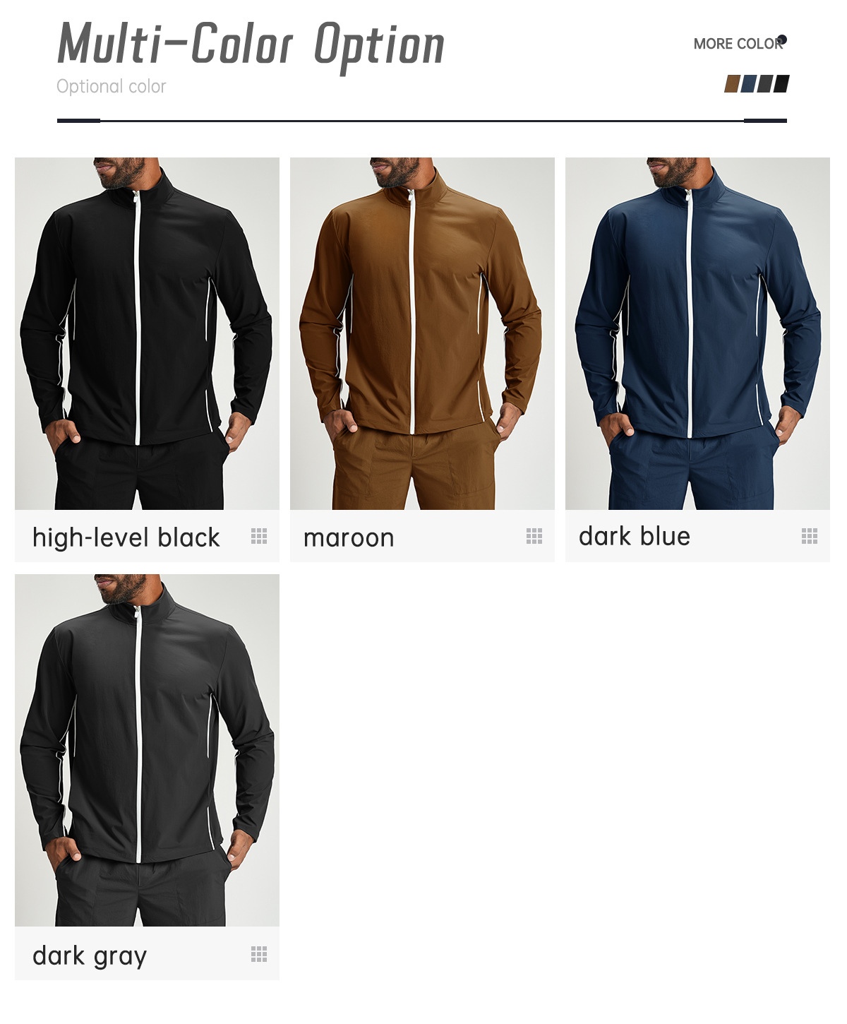 Feuchtigkeitsableitend, schnelltrocknend, antistatisch, atmungsaktiv, leicht, schweißabweisend usw. |